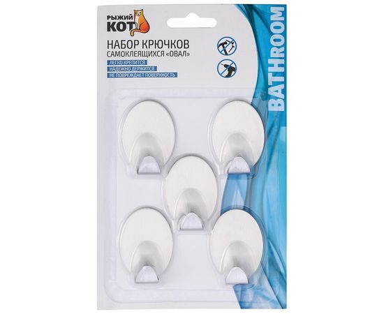 Название 1-2.Sale: Крючки самоклеящиеся "Овал", набор 5шт/уп, цена за уп, нерж.сталь 8226 Рыжий Кот