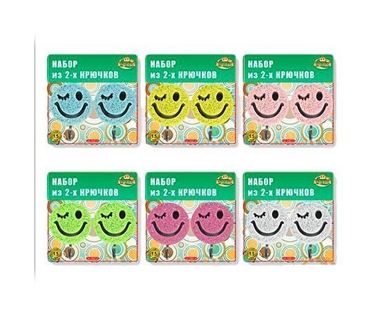 Крючки самоклеющиеся Улыбка-солнце 2шт/уп, цена за уп, пластик BL, Мультидом