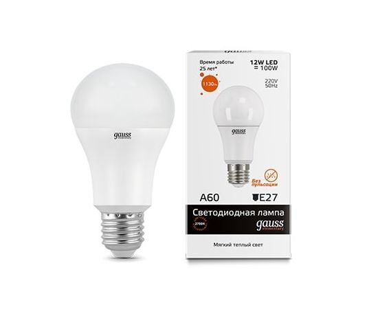 Название 1-2.Sale: Gauss Elementary лампа ЛОН A60 E27 12W(1130lm) 3000K 2K 113x60 матовая, пластик/алюм. 23212