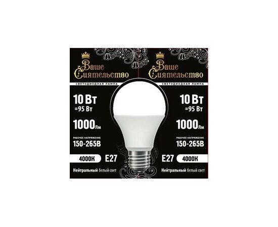 Название 1-2.Sale: ВАШЕ СИЯТЕЛЬСТВО лампа св/д ЛОН A60 E27 10W(1000lm) 4000K 4K 108x60 матов, пласт/алюм. IC 2г cz86697
