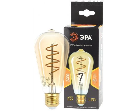 ЭРА F-LED ST64 — это декоративная светодиодная лампа с филаментными спиральными нитями, выполненная в стиле ретро-ламп Эдисона. Она сочетает в себе винта