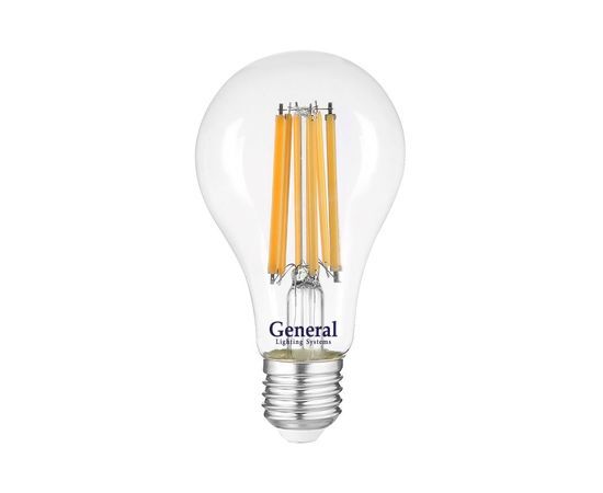 Лампочка светодиодная. General ЛОН A65 E27 25W 2700K 2K 65x125 филамент (нитевидная) прозр. 660322, 1 шт.