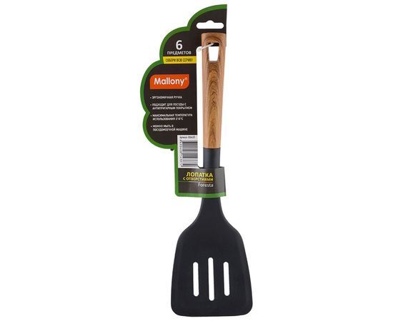Лопатка из нейлона Mallony FORESTA с пластиковой ручкой, дизайн под дерево, 33.5х9.8 см тм 006458 используется для жарки, переворачивания стейков, перемешива