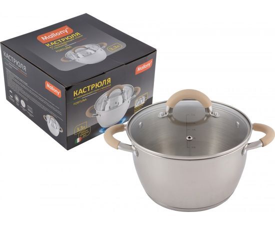 Название 1-2.Sale: Кастрюля нерж.сталь Fortuna с крышкой, объем 3,3л, 20*12,5см, матовый корпус, 7219 Mallony