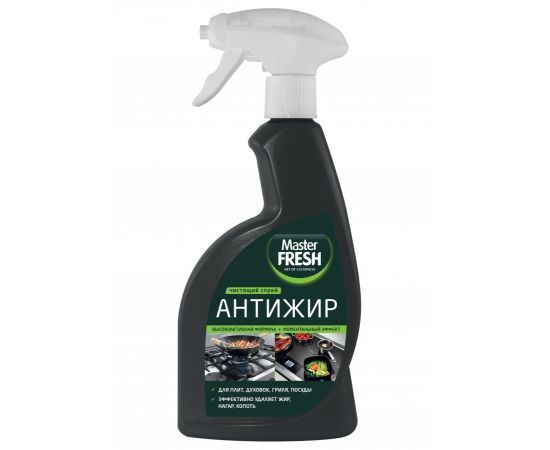 Спрей Антижир от мастер FRESH - незаменимый помощник на кухне. Это эффективное средство для удаления всех видов жиров, масел, стойких пищевых загрязнений с поверхностей плит в то