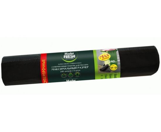 Пакет для мусора 240л Master FRESH 100*130см суперпрочный 40мкм 5шт черный - пакеты для мусора Master FRESH Максимальный размер суперпрочные б