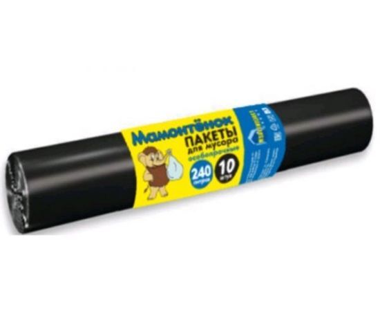 Название 1-2.Sale: Мешки для мусора 240л/10шт,24мкм,ПВД,особопрочные,черные,рулон,МРМ4609 Мамонтенок Чистолюб