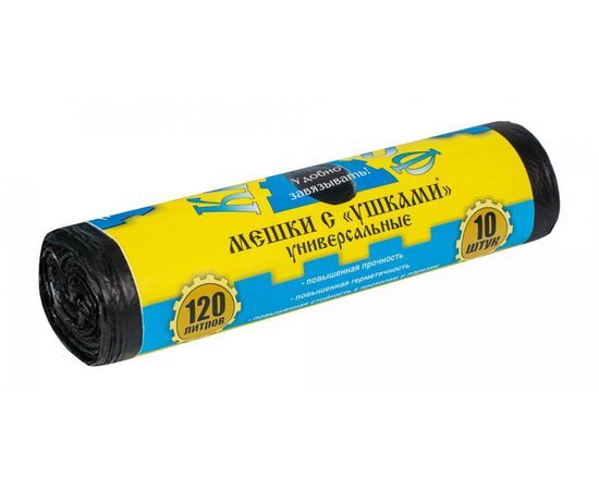 Название 1-2.Sale: Мешки для мусора 120л/10шт,13мкм,ПНД,ушки,черные,рулон, КРЕПАКОФ