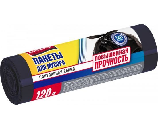 Название 1-2.Sale: Мешки для мусора 120л/10шт,14мкм,ПНД,повышенной прочности,черные,рулон,Popular 0236 Avikomp