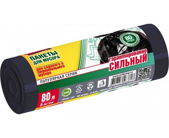Название 1-2.Sale: Мешки для мусора строительного и садового 80л/5шт,31мкм,ПВД,черные,рулон,Popular 3817 Avikomp