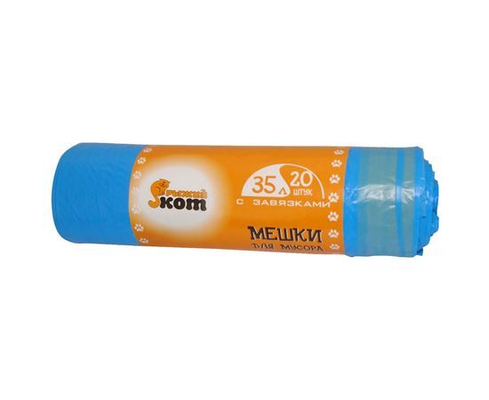 Мешки для мусора Рыжий Кот, 35л, набор 20шт/уп, цена за уп, с завязками 15мк, ПНД, рулон, синие 310326