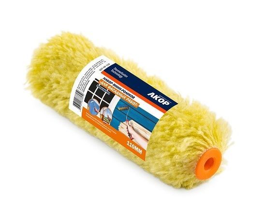 Мини-ролик АКОР Фасадные работы - 150 мм, ворс 12 мм 4607044338067 имеет прочное основание, которое выдерживает продолжительные нагрузки. Внешний слой также обла