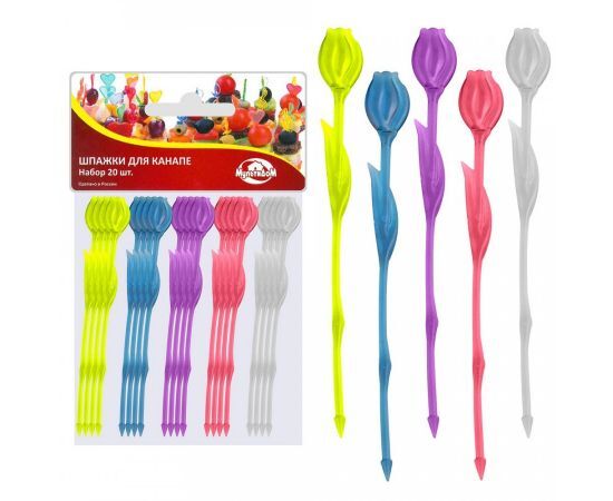 Название 1-2.Sale: Шпажки д/канапе "Тюльпаны", н-р 20шт/уп,цена за уп,82мм(кратность 10шт!!!),пластик МГ76-72 Мультидом