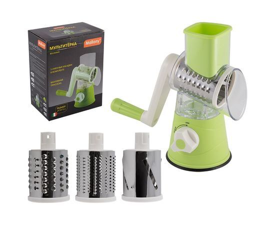 Мультитерка Mallony BELLISSIMO на вакуумной присоске 3 насадки 007410 предназначена для измельчения пищевых продуктов._x000d_