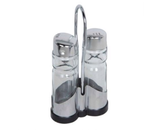 Набор из 3 предметов: солонка и перечница, объем: 2*40 мл, на подставке с крышками из нержавеющей стали_x000d_