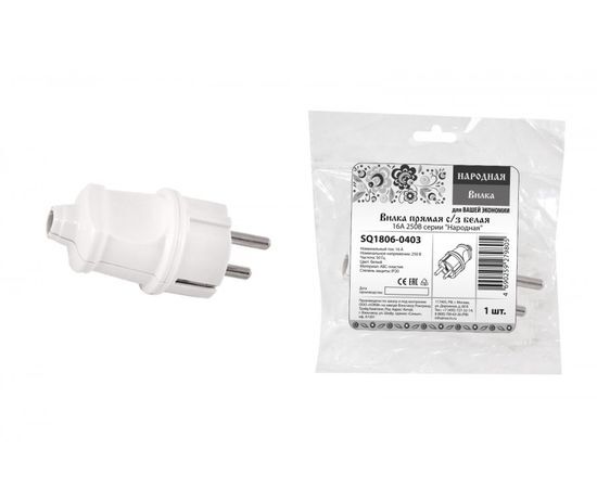 Название 1-2.Sale: TDM вилка 16А 250В (АБС-пластик, прямая, белая, земля) Народная (30!) SQ1806-0403