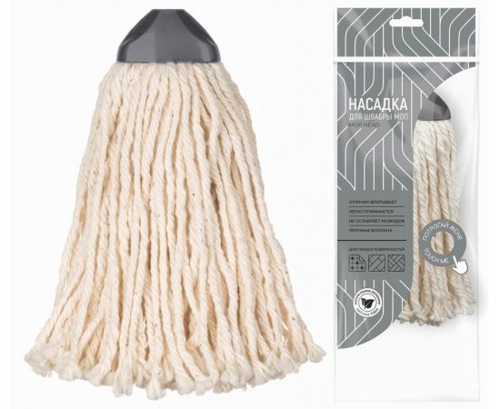 Насадка для швабры МОП Мега (140 г) с длиной волокна 28 см облегчит процесс мытья полов дома и не только. Тщательно очищает поверхности и не оставля