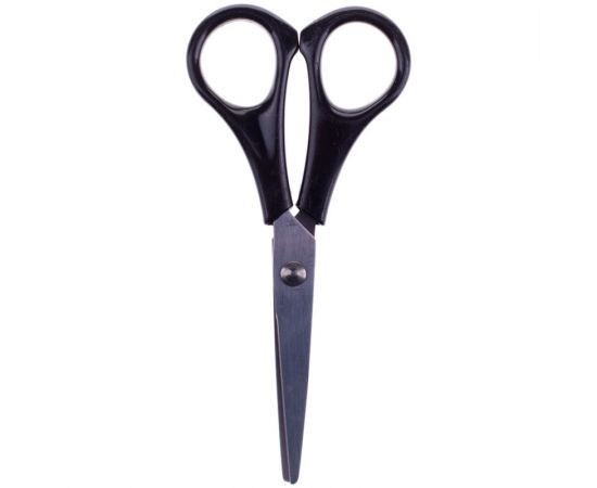 Ножницы офисные, длина 13,7 см, лезвия с заточкой, черные ручки, упакованы в ПВХ чехол с европодвесом