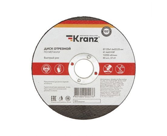 Диск отрезной по металлу 125x1.6x22.23 мм KRANZ KR-90-0914 предназначен для обрезки и обработки нержавеющих тонкостенных изделий из металла л