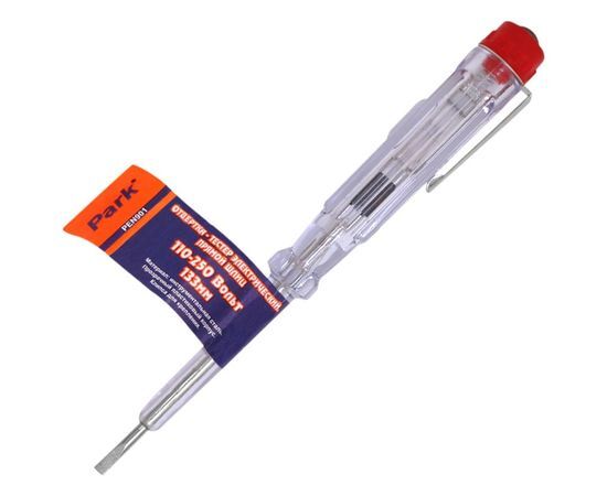 Отвертка-тестер Park Прямой шлиц PEN901 356901 выполнена из прочной инструментальной стали. Пластиковая прозрачная рукоять удобна для определения тока. Есть к