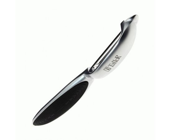 Овощечистка выполнена из качественного хромированного цинкового сплава. Размеры: 17 х 2,3 см. Режущий элемент сделан из высококачественной нержавеющей стали марки AIS