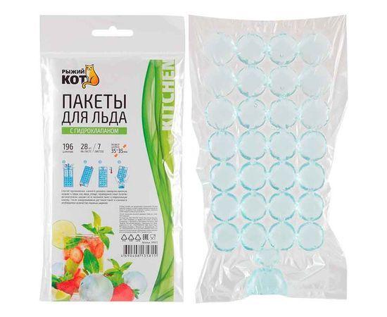 Пакеты для льда с гидроклапаном, 7*28 шт, 196 шариков Рыжий Кот 310972