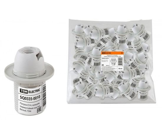 Название 1-2.Sale: TDM патрон E14 пластик, люстровый с кольцом, термостойкий, белый 4А (50!) SQ0335-0010