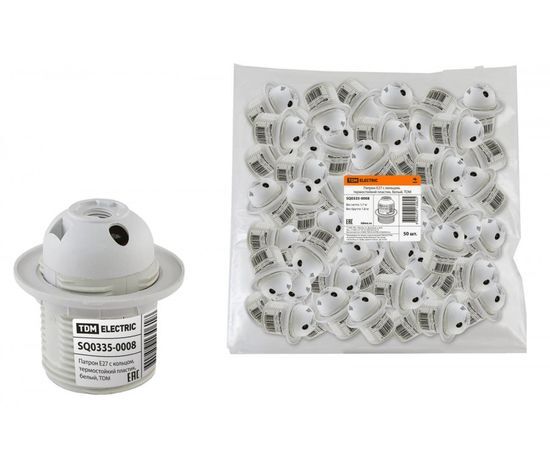 Название 1-2.Sale: TDM патрон E27 пластик, люстровый с кольцом, термостойкий, белый 4А (50!) SQ0335-0008