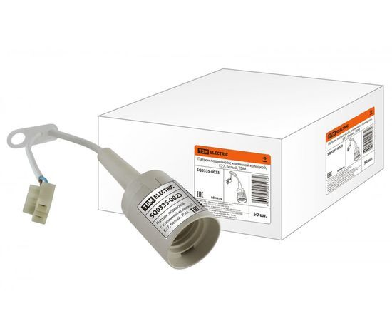 Качественный патрон подвесной SQ0335-0023 фирмы TDM - подходящий вариант для контакта и фиксации ламп с цоколем E27. Корпус сделан из высококачественного