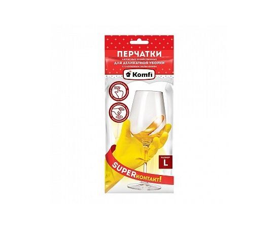 Название 1-2.Sale: Перчатки хозяйственные латекс 30гр пара,33см,х/б напыление рельеф,деликат уборка,разм L,17063/Komfi
