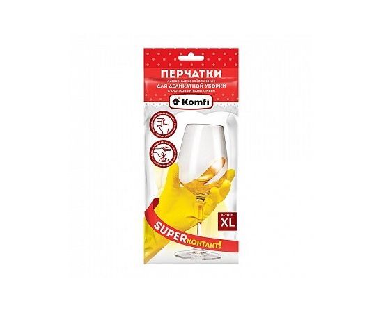 Название 1-2.Sale: Перчатки хозяйственные латекс 32гр пара,35см,х/б напыление,рельеф,деликат уборка,разм XL,17066/Komfi