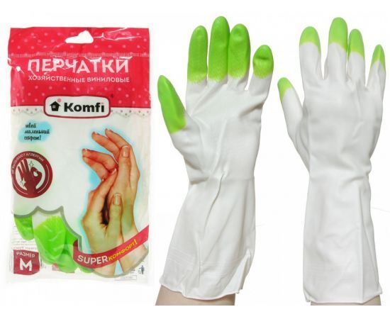 Название 1-2.Sale: Перчатки хозяйственные винил 71гр пара,31см,без напыл,рельеф,обливка пальцев микс,разм М,25590/Komfi