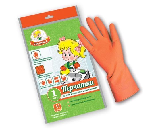 Название 1-2.Sale: Перчатки хозяйственные латекс 40гр пара,29см,без напыления,рельеф,разм M,MPU-M/ Умничка