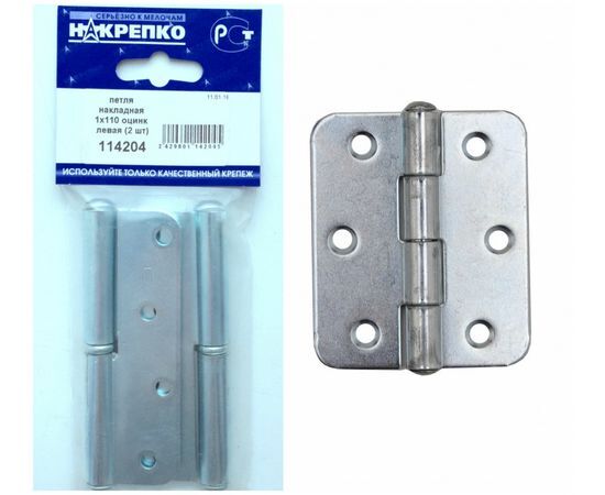 Петля накладная 1х110 оцинкованная левая (2 шт BL) (цена за уп) НАКРЕПКО 114204
