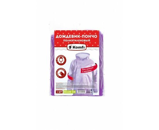 Название 1-2.Sale: Дождевик-пончо с рукавами полиэтилен 80*120см, фиолетовый 18 мк, 70гр Komfi