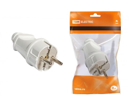 Прямая вилка, белая TDM SQ1806-0003 применяется для бытового и общественного пользования. Служит как для присоединения, так и разъединения к сети электроприборов мощнос