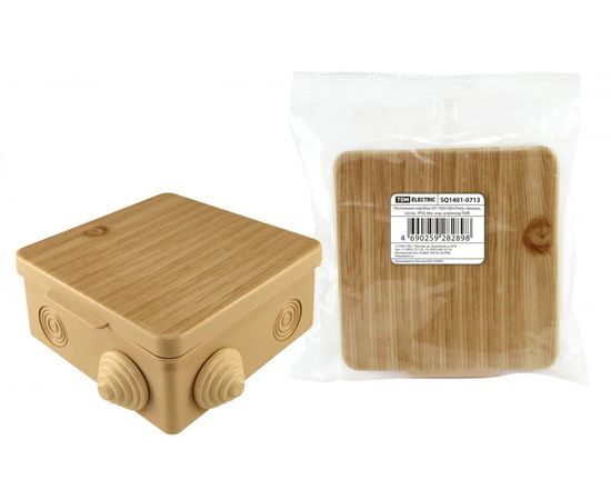 Название 1-2.Sale: TDM РЭМЗ коробка распред. 100х100х55 ОУ IP54, сосна, с крышкой, 8 входов, инд.штрих (18) SQ1401-0713