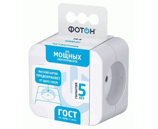 Тройник для розетки (с заземлением) ФОТОН АМ 16-4Е 16А служит для подключения четырех приборов или устройств к одной розетке. Удивительно, но при достаточно н