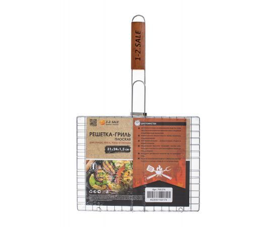 Название 1-2.Sale: 1-2.SALE Решетка-гриль плоская 31*24*1,5см /дл.50см (3.5/2.5/1.5мм), хром.сталь/дер.