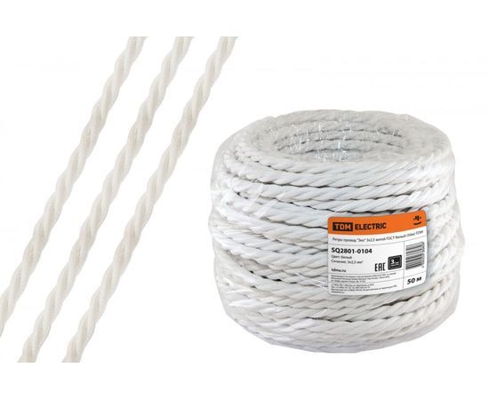 Название 1-2.Sale: TDM РЕТРО-провод "Эко" 3х2,5 витой ГОСТ белый (бухта 50м, цена за 1м) SQ2801-0104