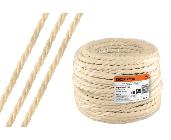 Название 1-2.Sale: TDM РЕТРО-провод "Эко" 3х2,5 витой ГОСТ бежевый (бухта 50м, цена за 1м) SQ2801-0114