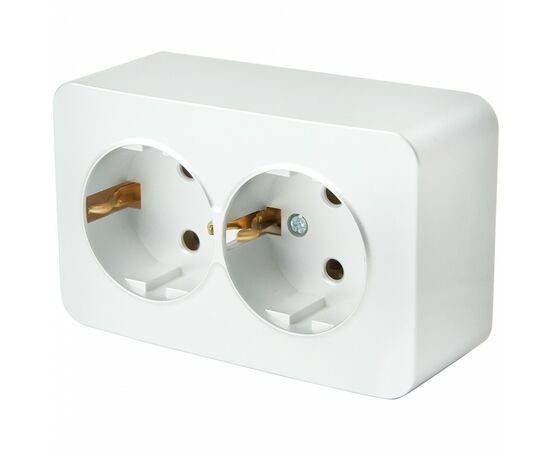 Розетка STEKKER MST16-12-01 на 2 гнездо, с заземлением. Материал: ABS пластик, цвет белый, размер 124*60*40мм. Номинальное напряжение 250, номинальный ток 16А, д