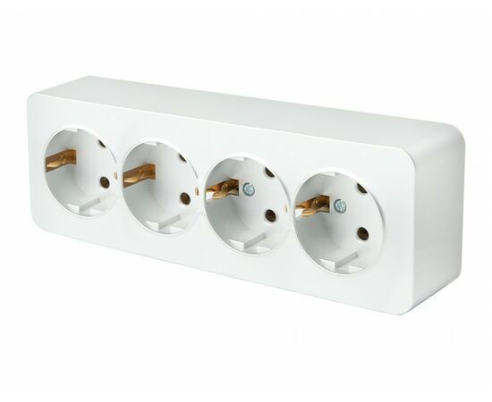 Розетка STEKKER MST16-14-01 на 4 гнездо, с заземлением. Материал: ABS пластик, цвет белый, размер 210*60*40мм. Номинальное напряжение 250, номинальный ток 16А,