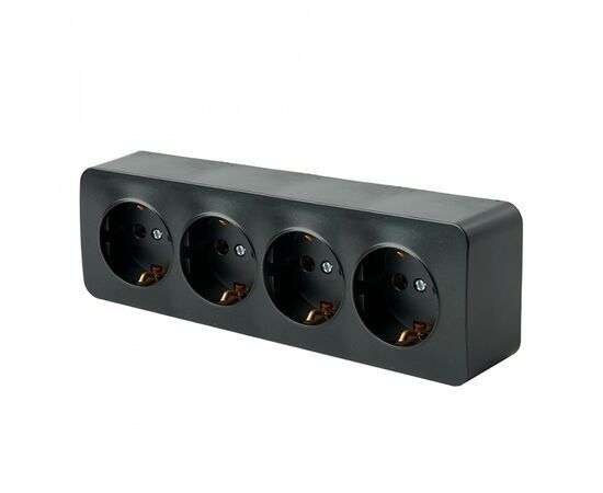 Розетка STEKKER MST16-14-02 на 4 гнездо, с заземлением. Материал: ABS пластик, цвет черный, размер 210*60*40мм. Номинальное напряжение 250, номинальный ток 16