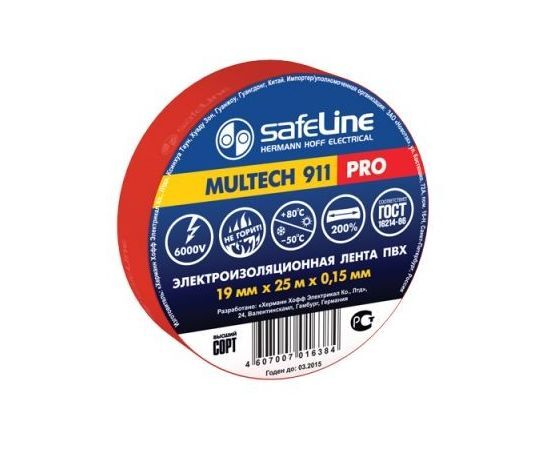 Название 1-2.Sale: Safeline изолента ПВХ 19/25 красная, 150мкм, арт.12125