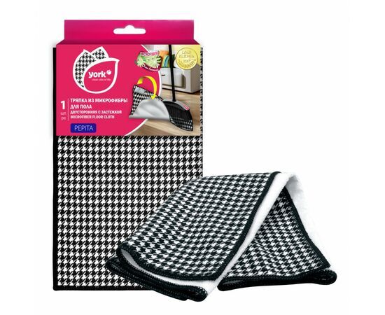 Название 1-2.Sale: Тряпка для пола микрофибра 50*60см,250гр/м2,двухсторонняя,липучки,черно-белая,Пепита,026370/York