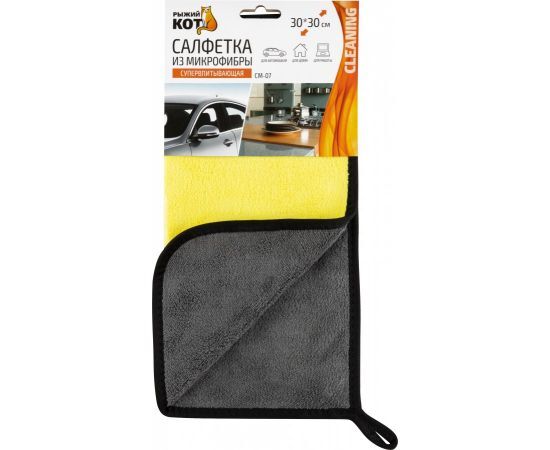 Название 1-2.Sale: Салфетка из микрофибры 30*30см,500гр/м2,СУПЕРВПИТЫВАЮЩ.,2-ух стор.,CM-07,104775/ Рыжий кот