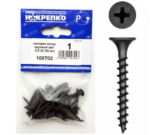 Название 1-2.Sale: Саморез оксид по дереву крупный шаг 3,5*25 (50 шт BL) (цена за уп) НАКРЕПКО 100702