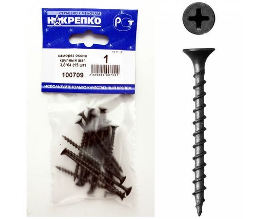 Название 1-2.Sale: Саморез оксид по дереву крупный шаг 3,8*64 (15 шт BL) НАКРЕПКО 100709
