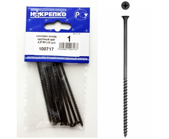 Название 1-2.Sale: Саморез оксид по дереву крупный шаг 4,8*89 (10 шт BL) НАКРЕПКО 100717